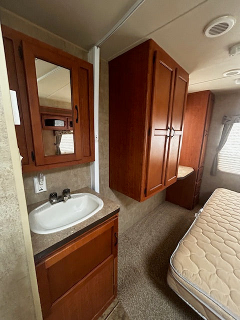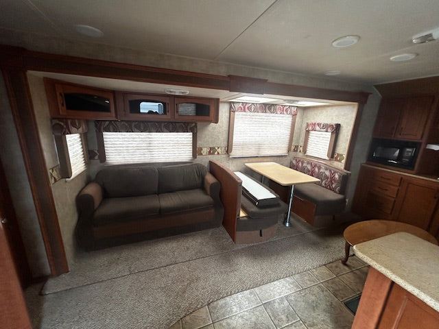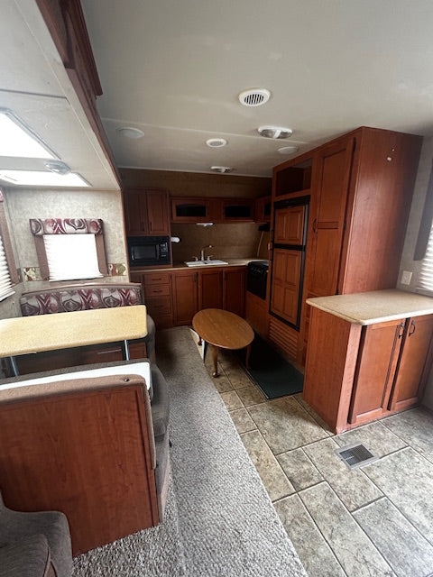 2 slide outs- rear bedroom front kitchen super clean trailer you won't find one at this age in the condition or quality of this unit won't last long