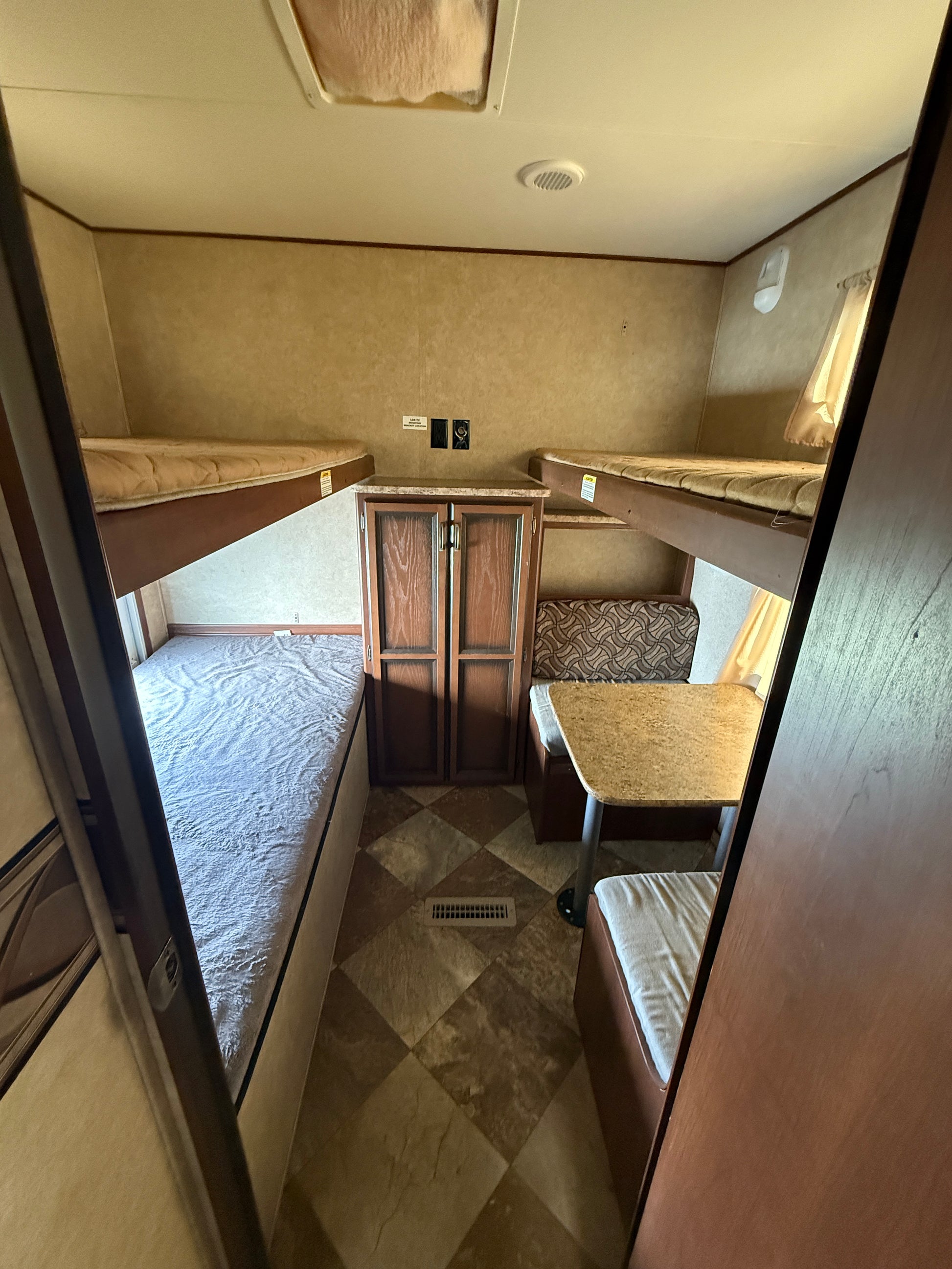 Well-kept 2014 Zinger travel trailer with a great family-friendly layout. It features a rear bunk room for the kids and a front private queen bedroom for added comfort and privacy.